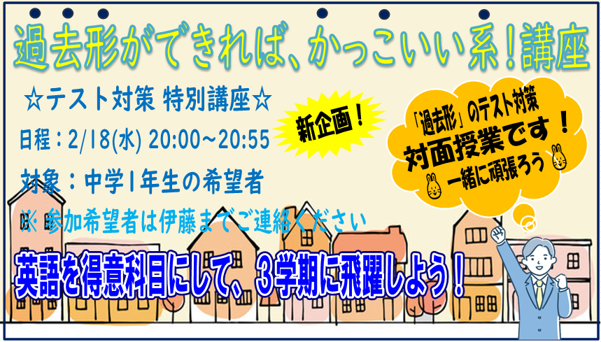 中1生対象「過去形ができれば、かっこいい系!講座」を実施しました✏