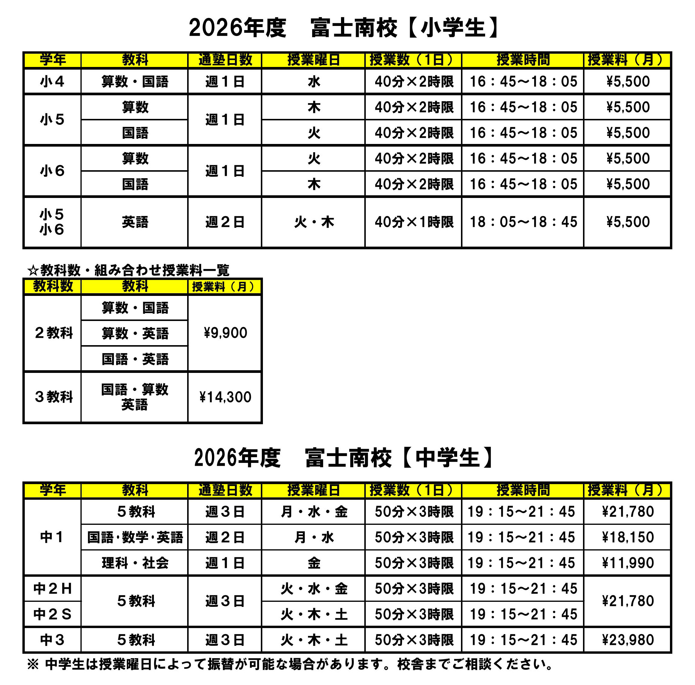※授業内でお知らせをお子様に配布させていただいております。ご確認ください。