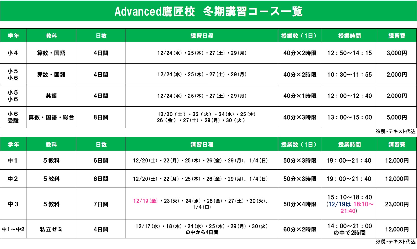 中学生の冬期講習説明会へ参加希望の方はこちら
