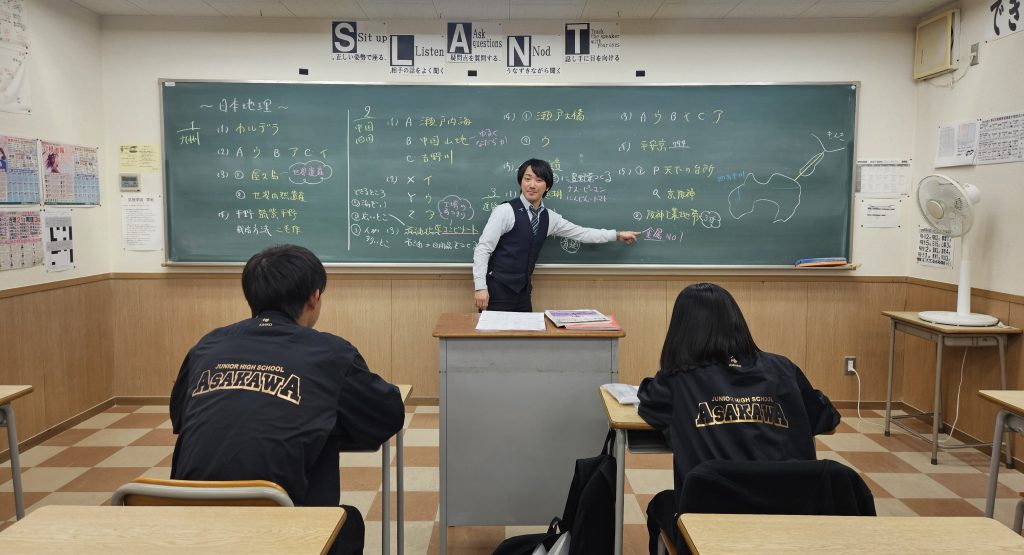 当初は、国語の授業予定でしたが、生徒のみなさんから「地理をやってほしい!」というリクエストが多数あったため、急遽予定を変更しての授業です。