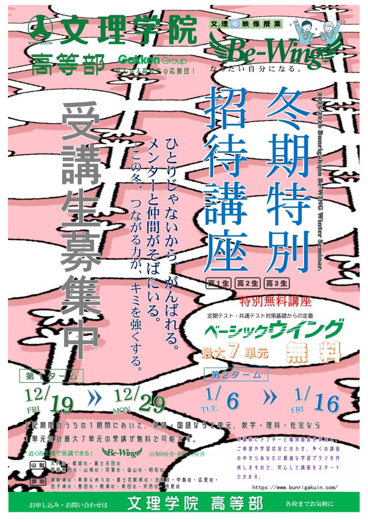 下の画像をクリックすると文理学院の冬期講習で成績の上がる3つの理由を見ることができます👀