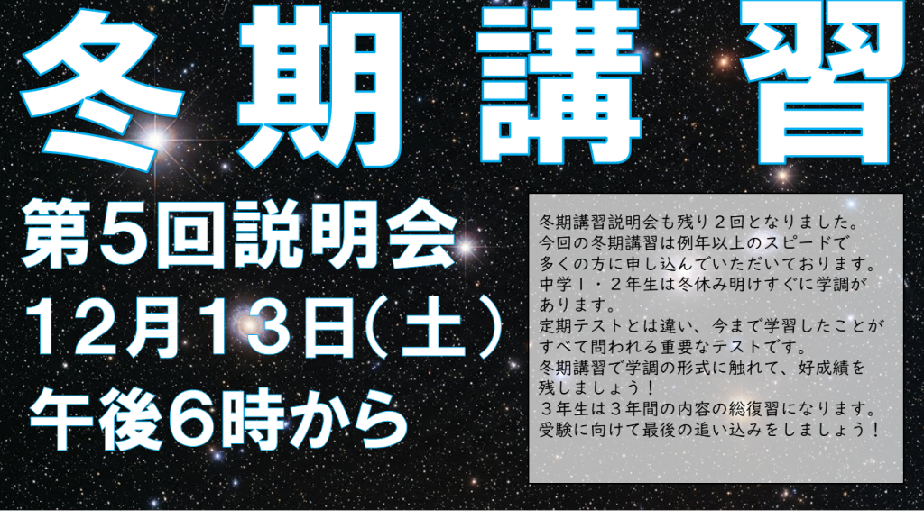 次回「冬期講習説明会」は!?