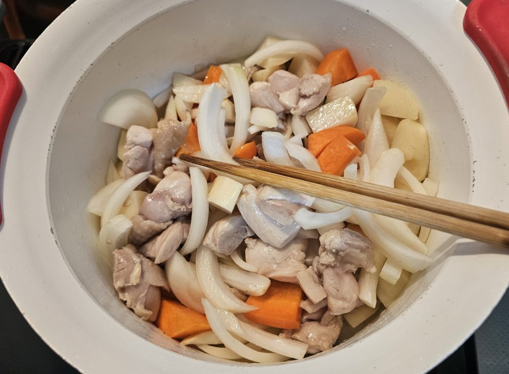 その後は、玉ねぎ・ジャガイモ・ニンジンを投入です!