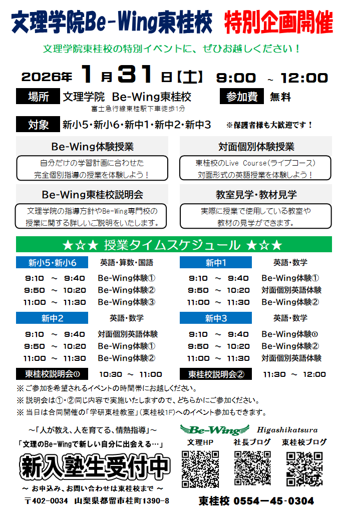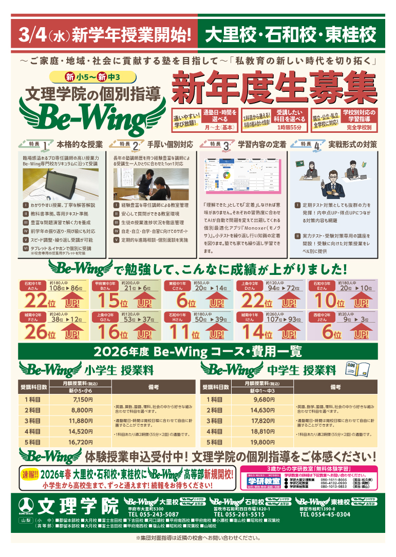 今年度からBe-Wing石和校はさらにパワーアップしています!!
