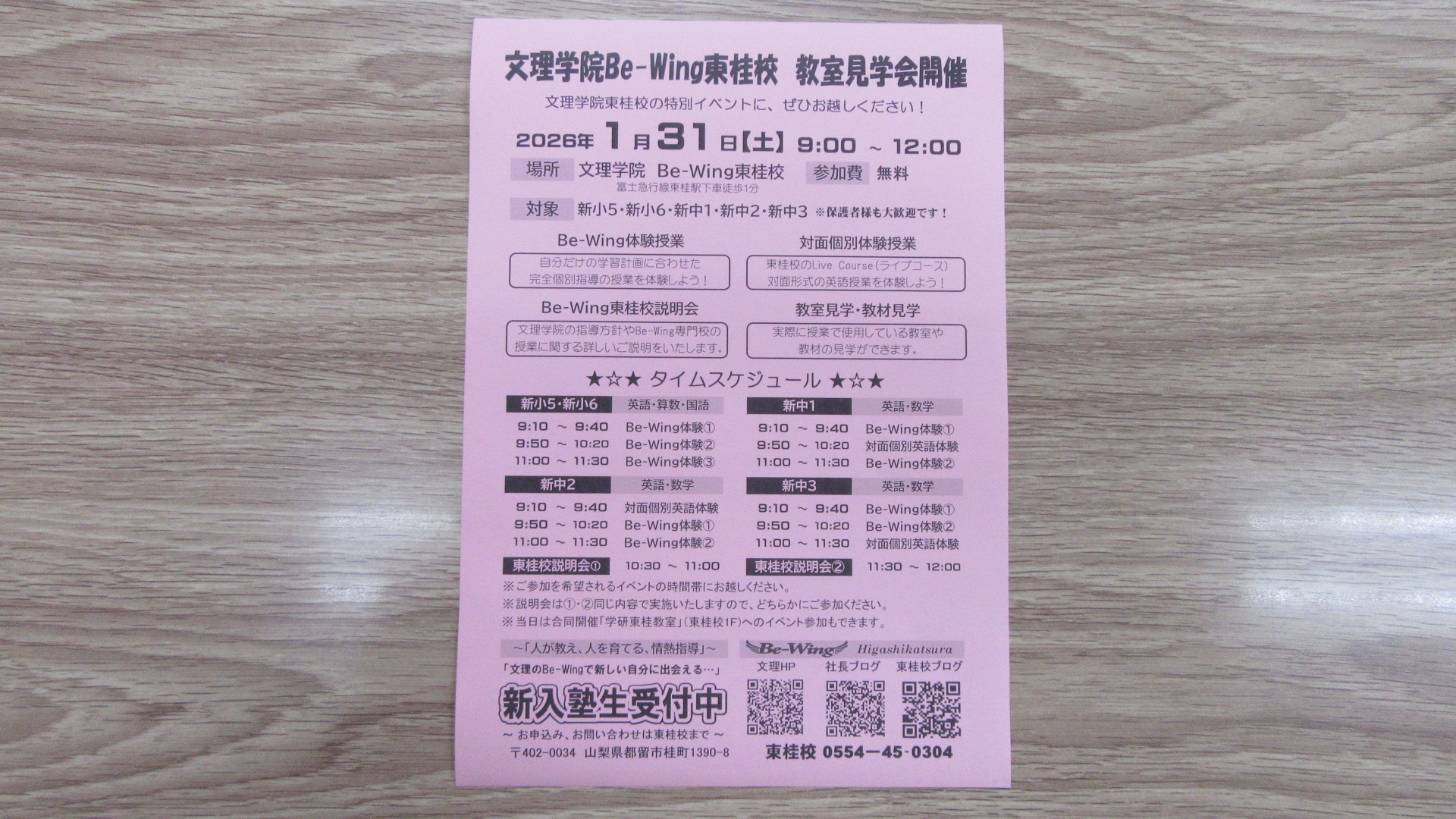 Be-Wing東桂校では2月2日(月)~2月27日(金)での実施となります。