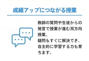 みんなが同じ教室・空間で勉強をするから周りから刺激を受けることができる。