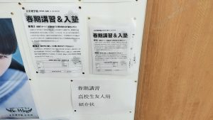 映像授業教室の入口に春期講習の友人用パンフレット兼申込書を設置しました。