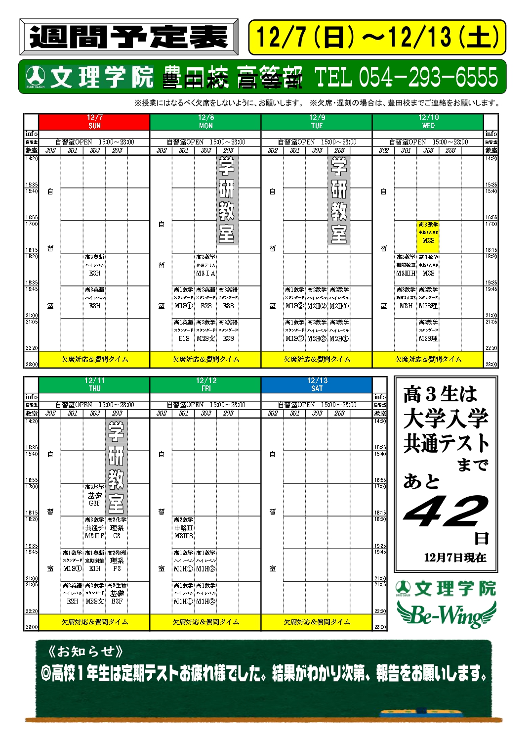 公開日時: 2025年12月5日1075 × 1518 (【豊田高等部】週間スケジュール)