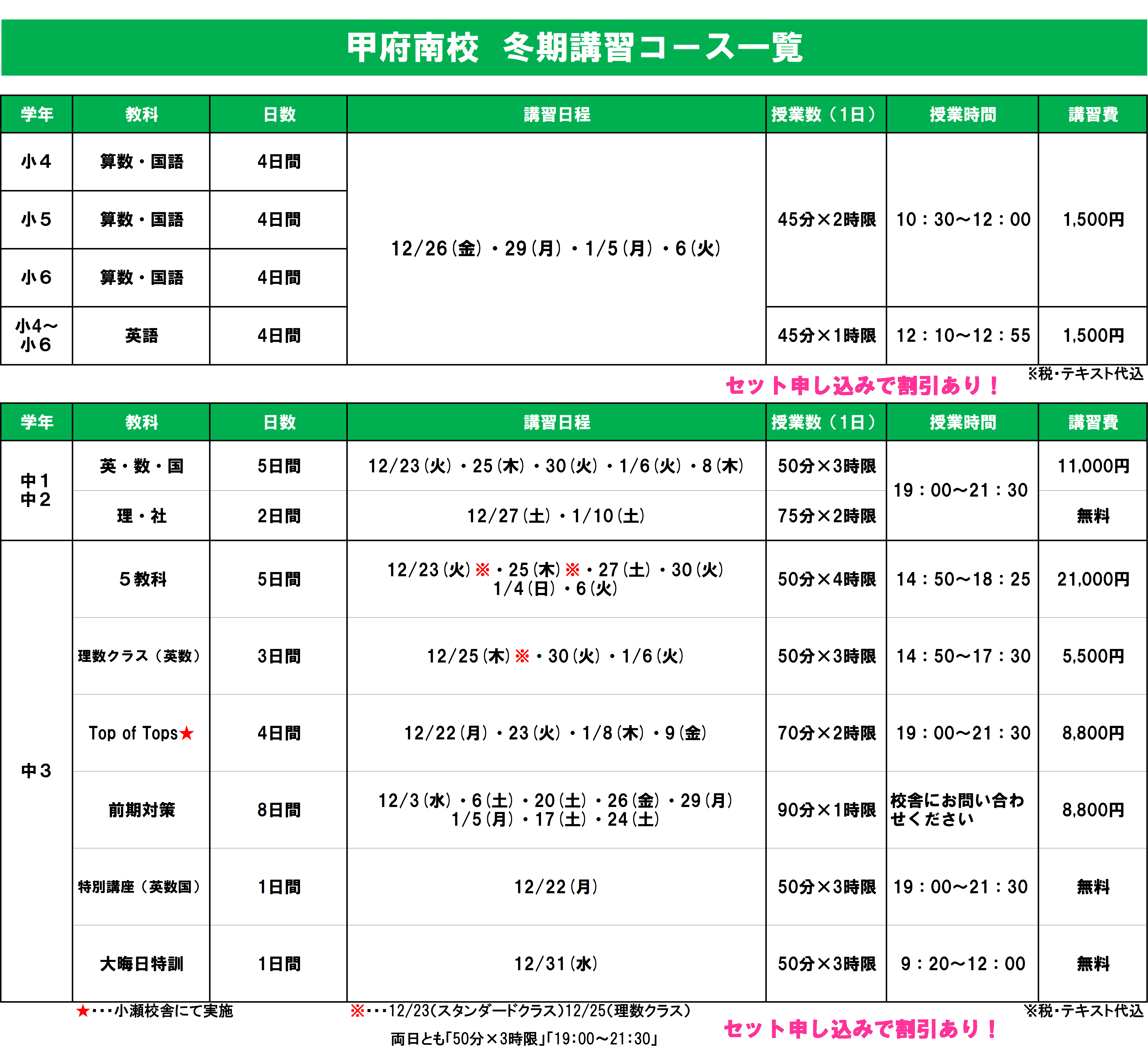 「3教科(国語・数学・英語)週2回通塾」と「2教科(理科・社会)週1回通塾」の選択も可能となります!