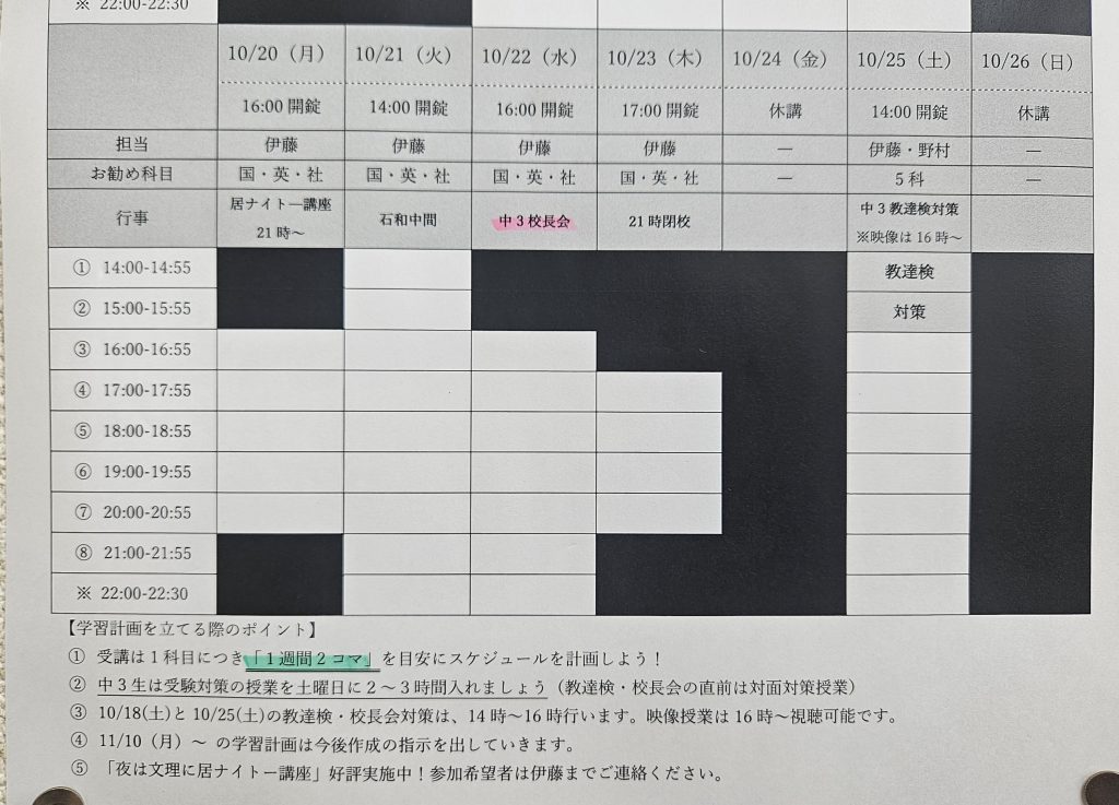 甲府市の中学3年生の生徒さんは、14時から校長会対策がありますので、よろしくお願いいたします。