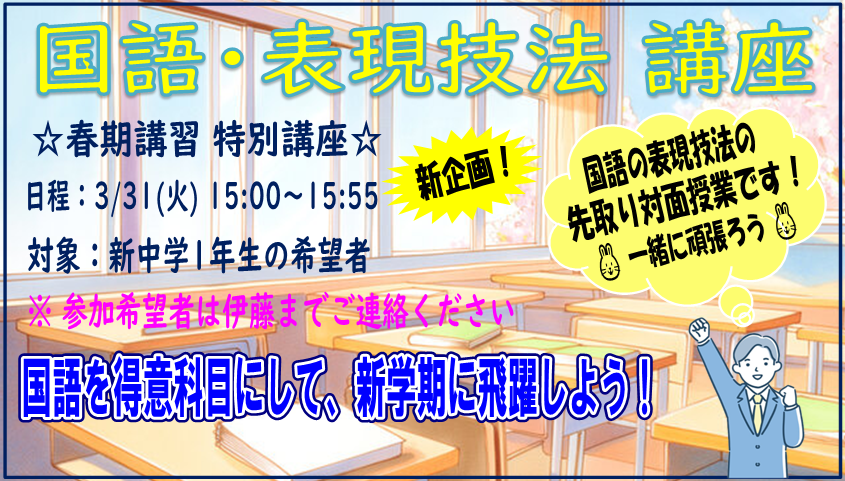 詳細はこちら→【新年度生募集!】