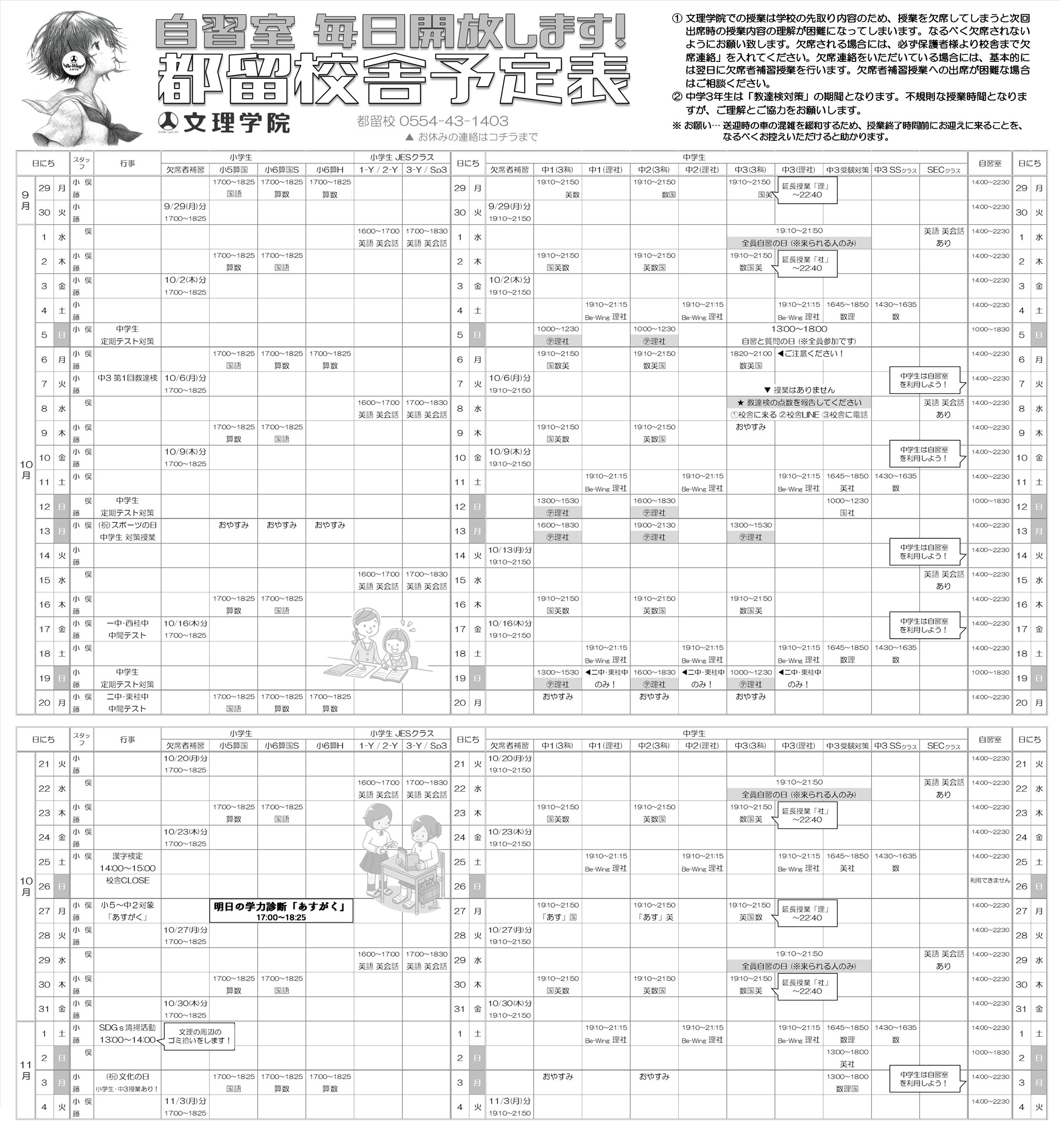 ▼ 都留校の10月予定表はコチラ! ( •̀ ω •́ )✧