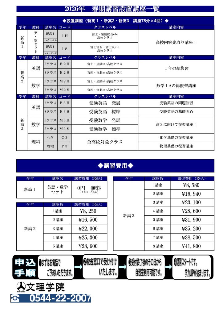 3/7(土)14:00~16:10 高校数学・英語