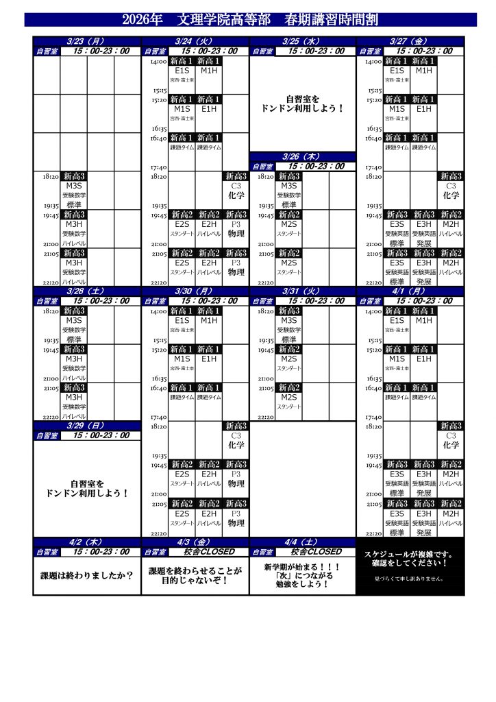 受験は終わりますが、高校の勉強はこれからスタートです。
