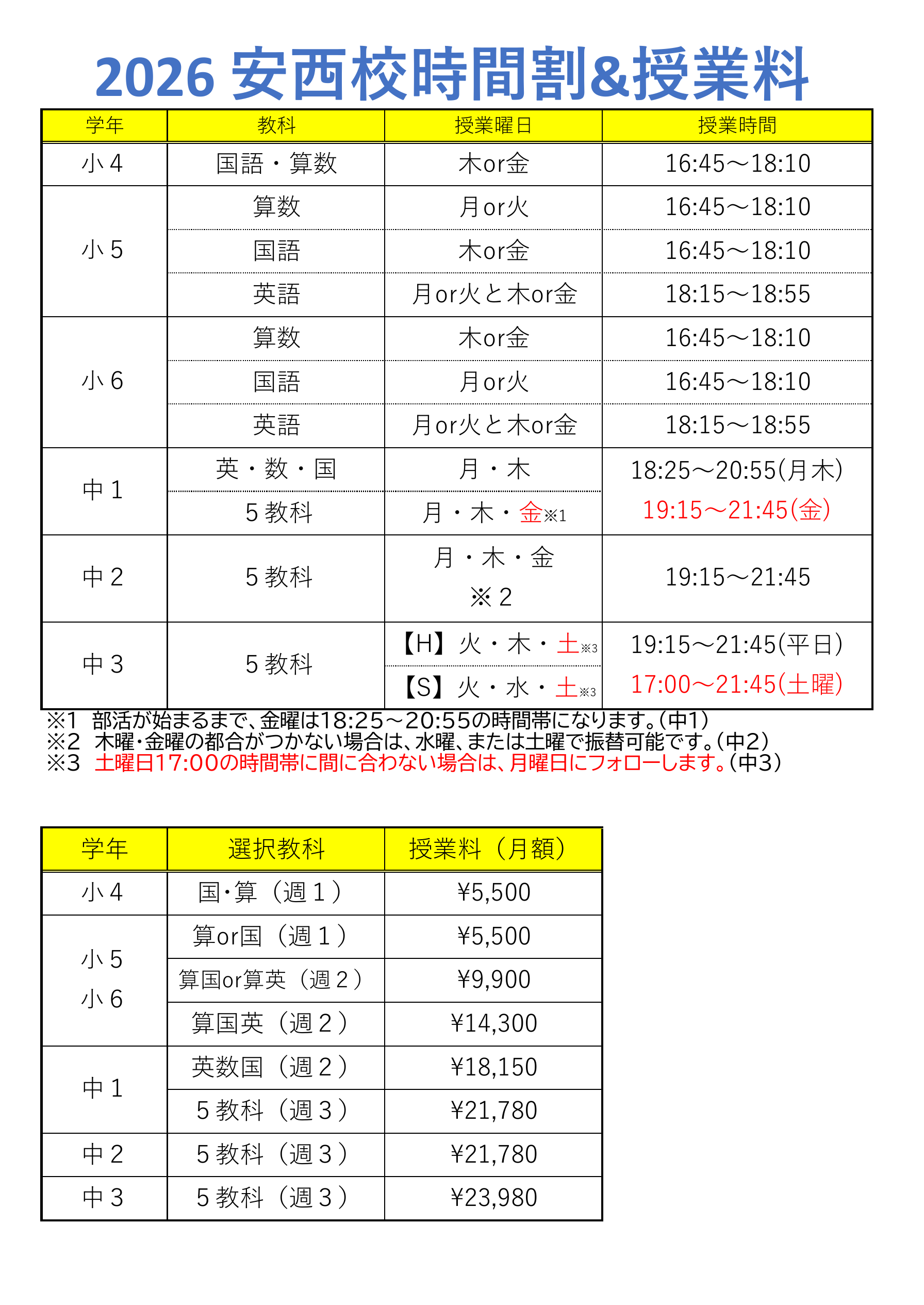 【安西校の予定】