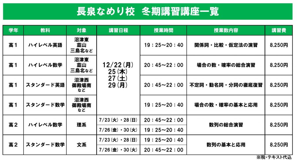 「理系 沼津東・三島北生など」:金 20:00~22:35
