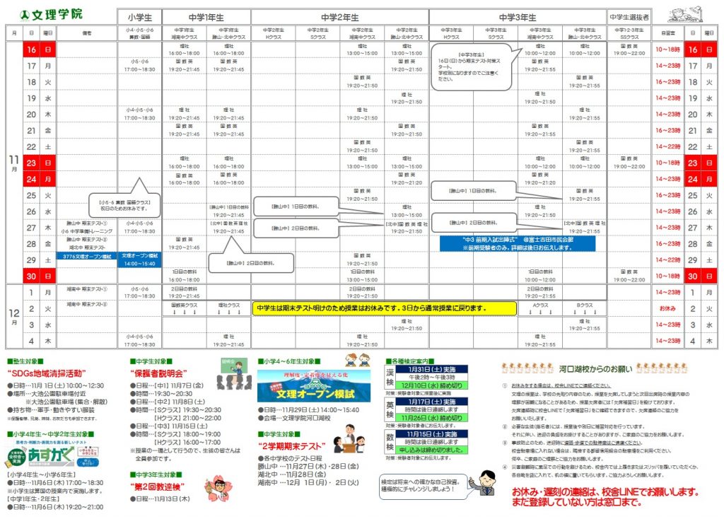 文理学院河口湖校では、2025年の締めくくりに向けた冬期講習の受付を開始しました。学力向上や苦手克服に最適なこの機会をぜひご活用ください。お気軽にお問い合わせいただき、充実した冬休みをお過ごしください。