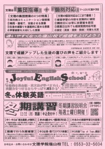 冬期講習の詳細(日程・料金など)は ⇒冬期講習塩山校