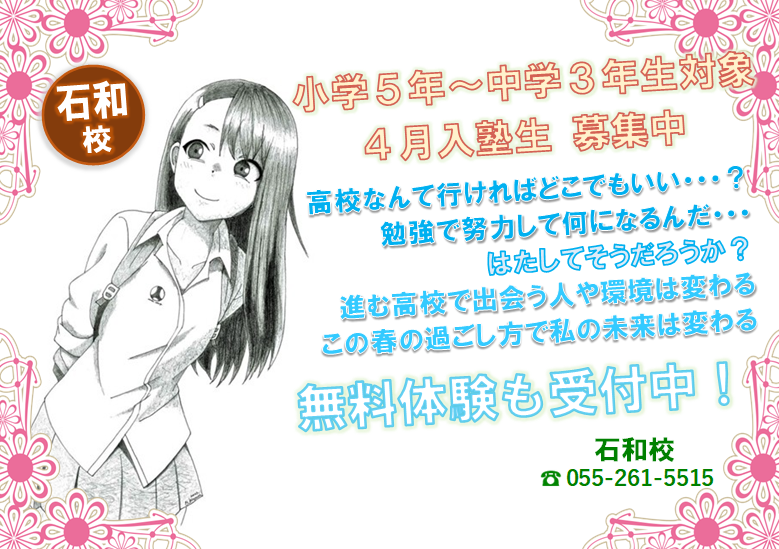 新学年でスタートダッシュを切れるように、石和校で一足早く新学年の勉強をスタートさせよう!
