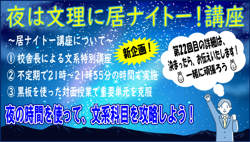 🌸 「夜は文理に居ナイトー!講座」第㉑回実施のお知らせ 🌸