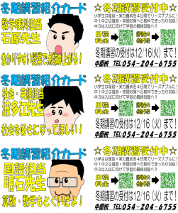 先程は去年夏期講習に来てくれた中3生が冬期講習を申込してくれました!