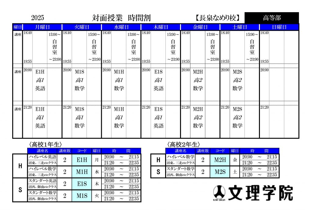 新高1春期講習(13:30~17:10)→ 高等部説明会(18:20~19:20) → 公開授業(19:20~21:55)
