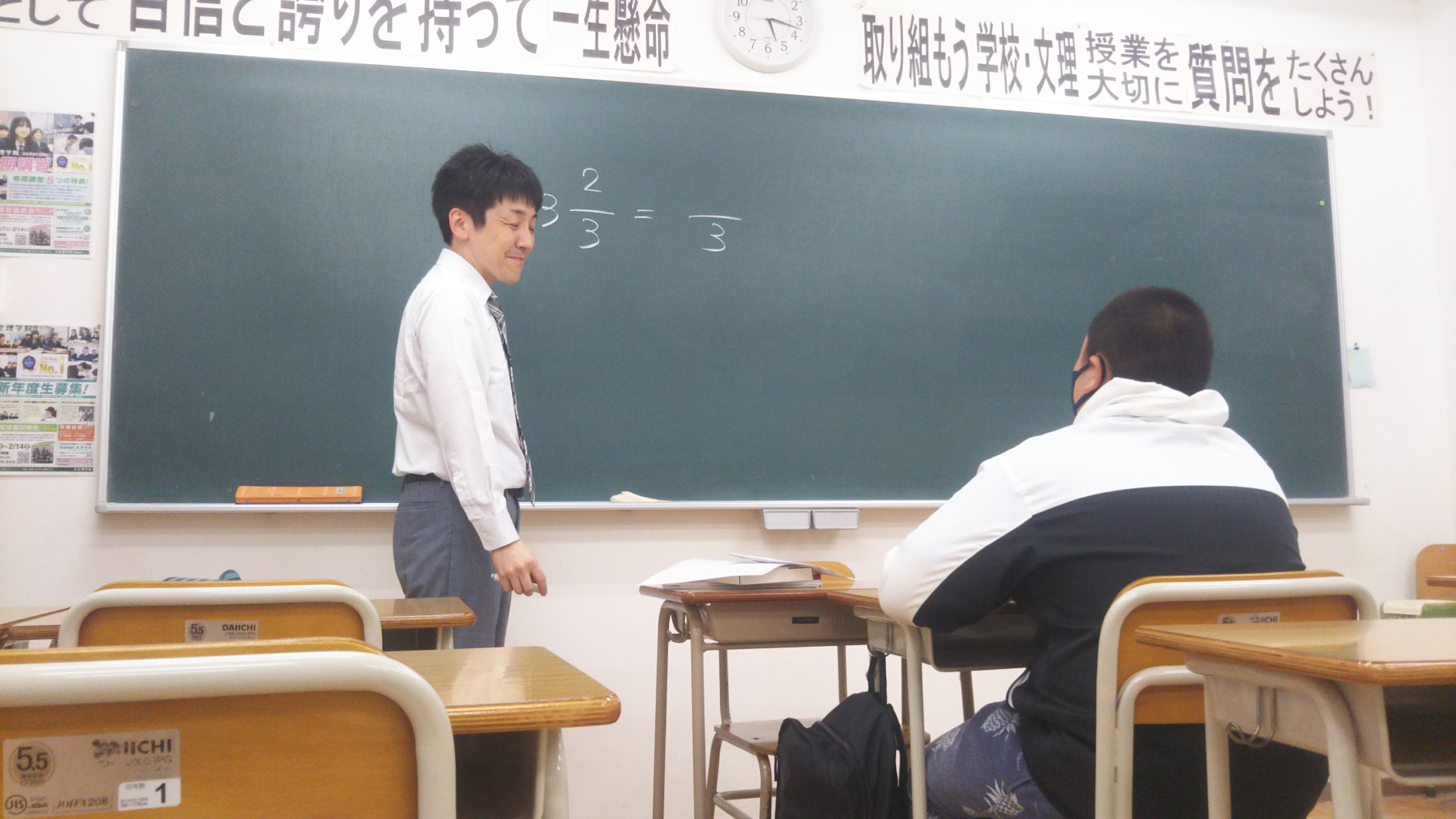 そういえば今日は、杉山先生が生徒とマンツーマン指導しておりました☆彡そうなんです、文理学院は生徒さんがたった1人でも全力ですよ。対応したT君もニッコリ笑顔で最後は帰宅しました(^^♪算数の授業の1コマです。話を聞いていると、生徒さんが苦手なところにフォーカスしてフォローアップしながら、やってましたからね。そりゃ、生徒さんも帰りにニッコリしますよね♪♪杉山先生がわかりやすく、楽しく力のつく授業で理科や算数・数学をやってくれますからね!!