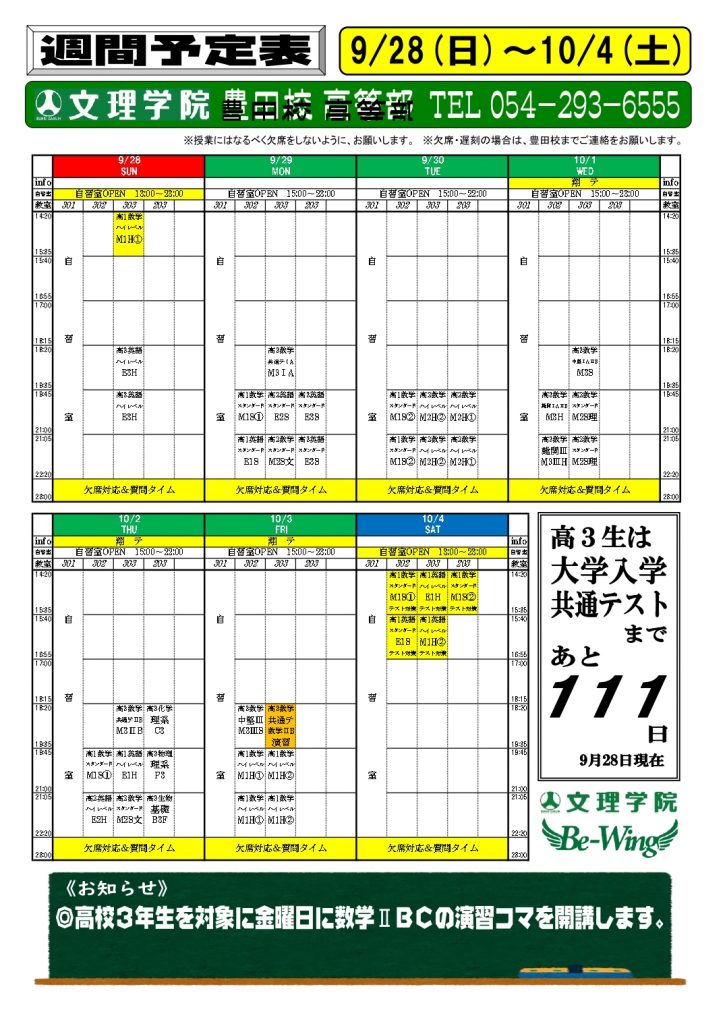 文理学院豊田校 ☎054-293-6555