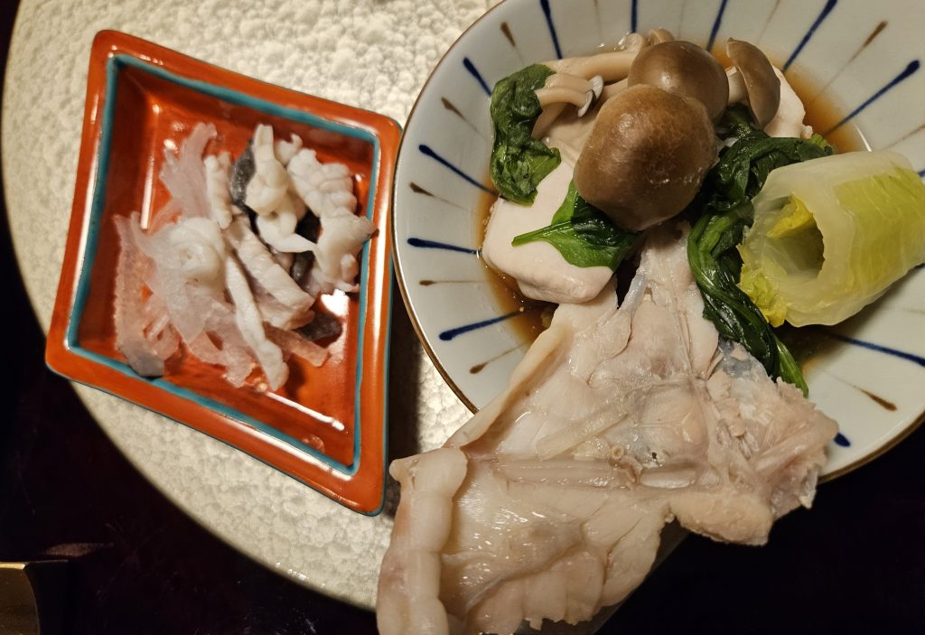 特に、手前の白いフグは、ミノのような食感で一番おいしかったです。