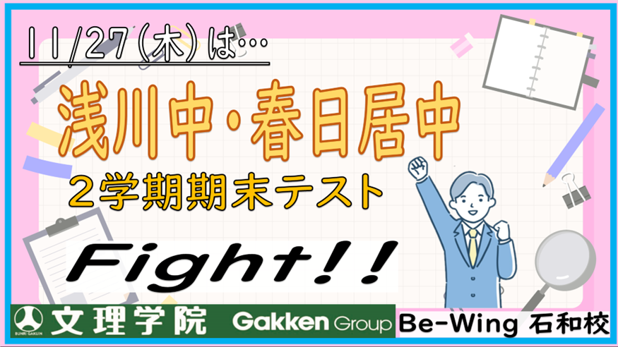 ぜひ、勉強の成果を発揮して期末テストを終えてほしいなと思います。
