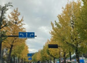 十分満足して家に帰る途中、高尾駅近くの道には立派なイチョウ並木が。