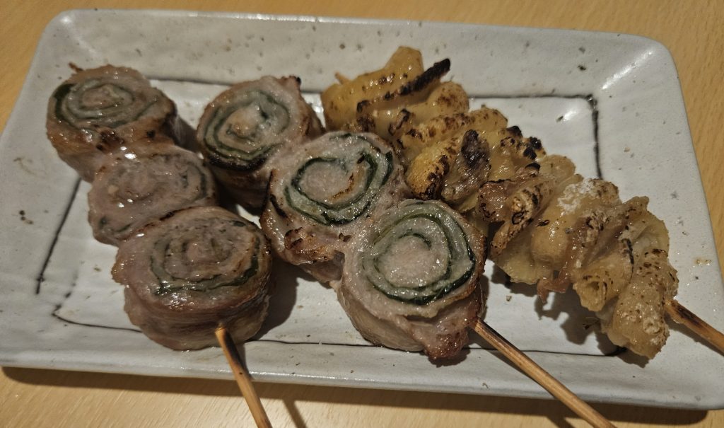 豚バラのしそ巻き&鶏皮串(o^^o)