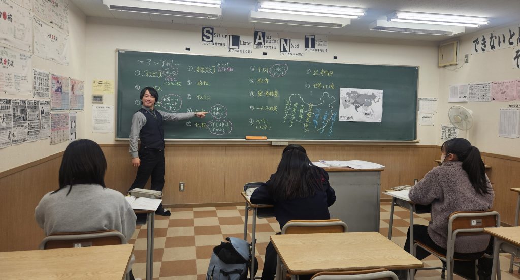 サッカーのアジアカップにちなんで、中学1年生の希望者を対象に「アジア州」の対面授業です✏