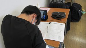 Y君は、昨日の夜8時45分に校舎に来校をしてくれて、初めて校舎で授業を受けました✏