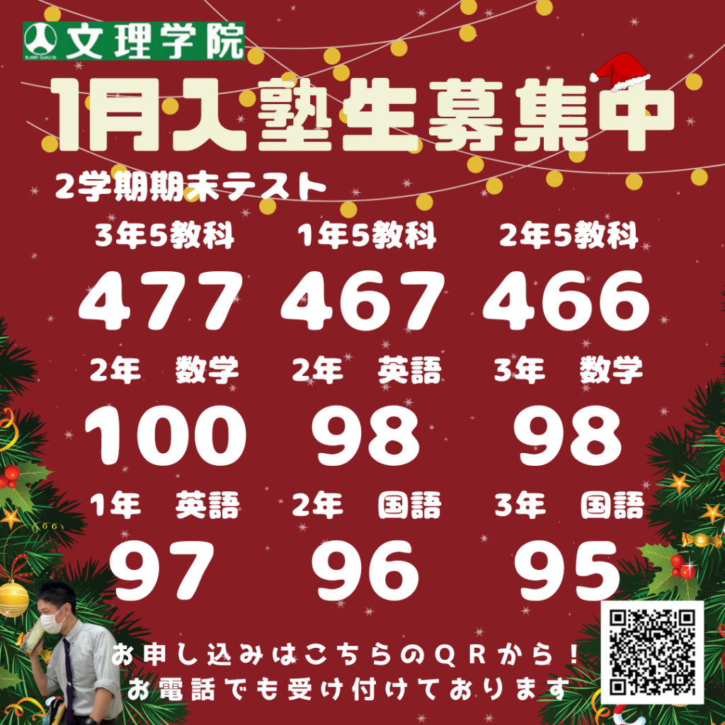 もうすぐで冬期講習も始まるので、体調に気を付けて過ごしていきましょう!