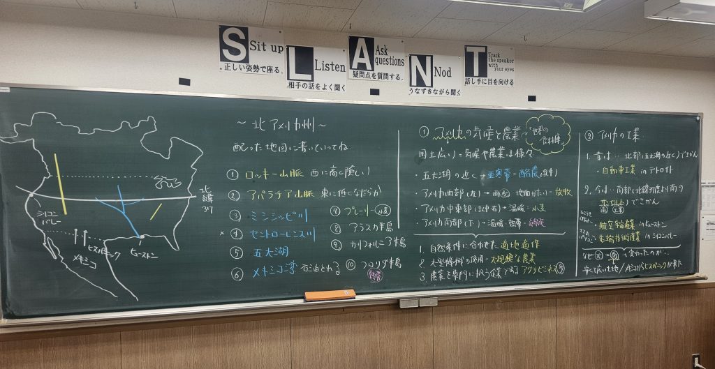 中学1年生の希望者を対象とした社会の地理「北アメリカ州」の授業です。
