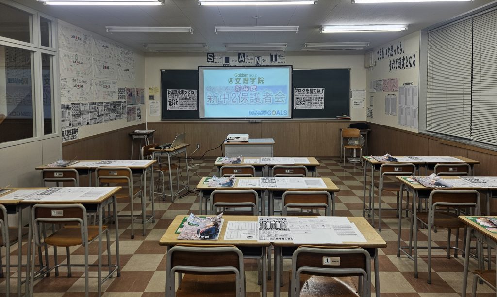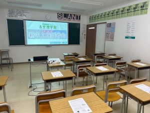 さて、本日は19時半から中学1年生の保護者説明会を開催しました!