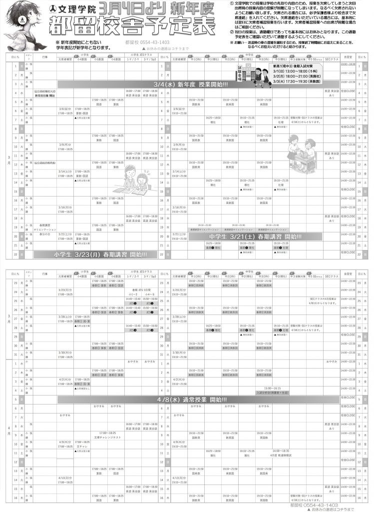 新学期の学習に向けて、充実した授業カリキュラムをご用意しております。