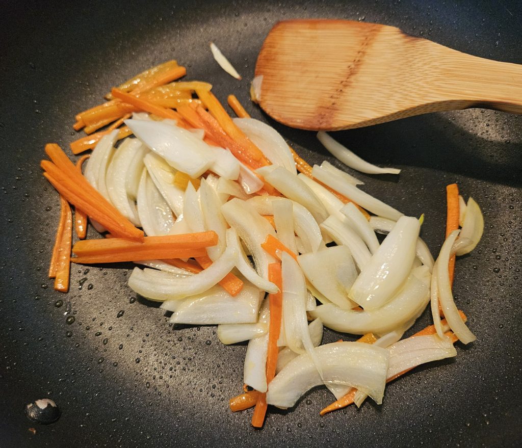 特ににんじんは、よ~く火が通るように気を付けて炒めます。