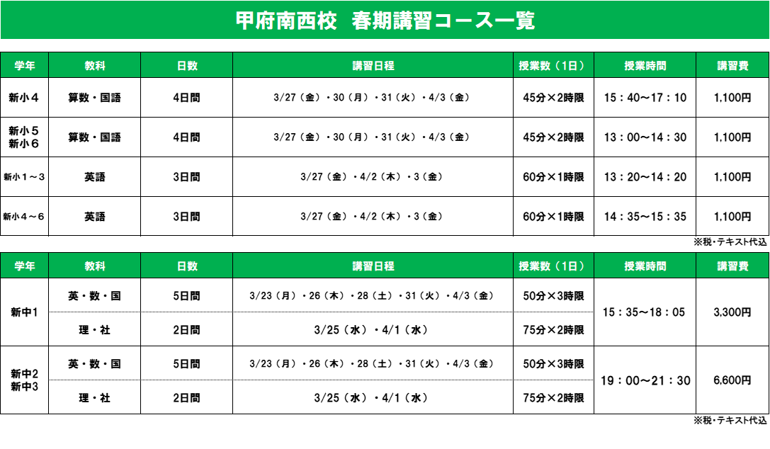 ↑ 2026年度:石和校の通常授業のご案内です。ぜひご覧ください。↑