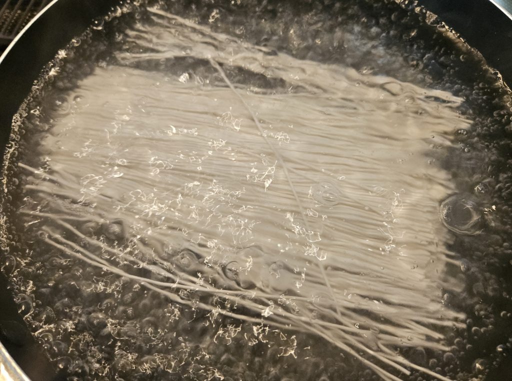 別のフライパンでそうめんをゆでます(^O^)