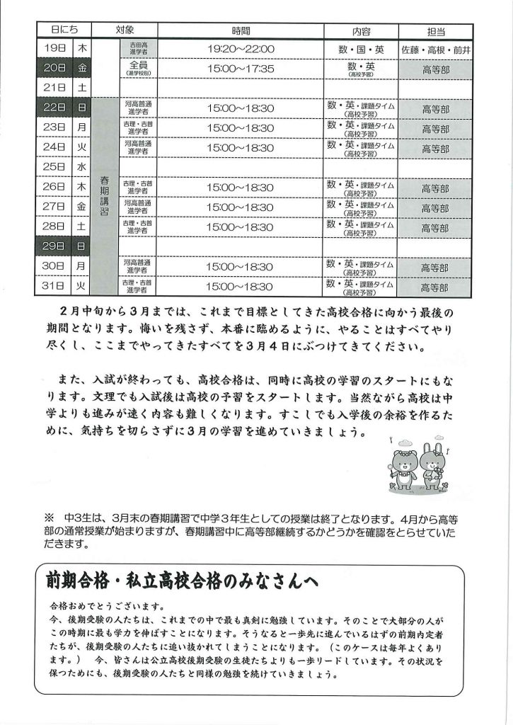 ★★★ 新高校1年生になる生徒と保護者さまへ ★★★