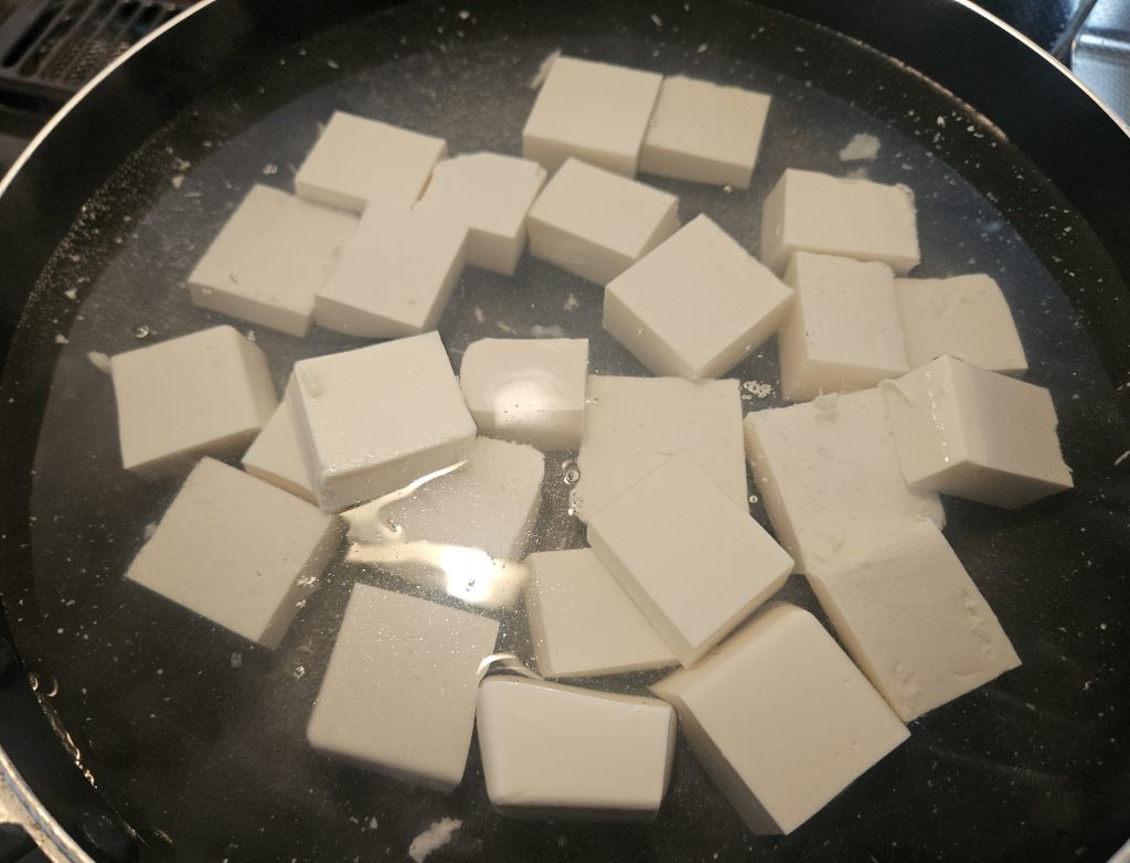 とろみを出したら、ここで下ゆでした豆腐をinです!