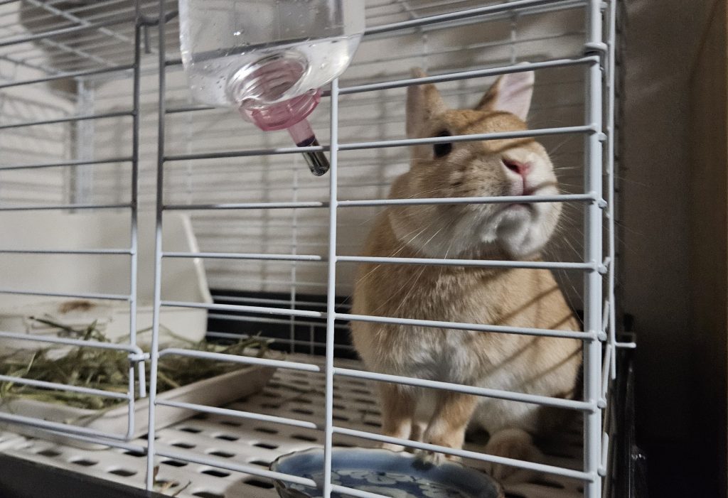 この後、ゲージを開けたらジャンプしながら飛び出していき、楽しそうに部屋中を走り回っていました。