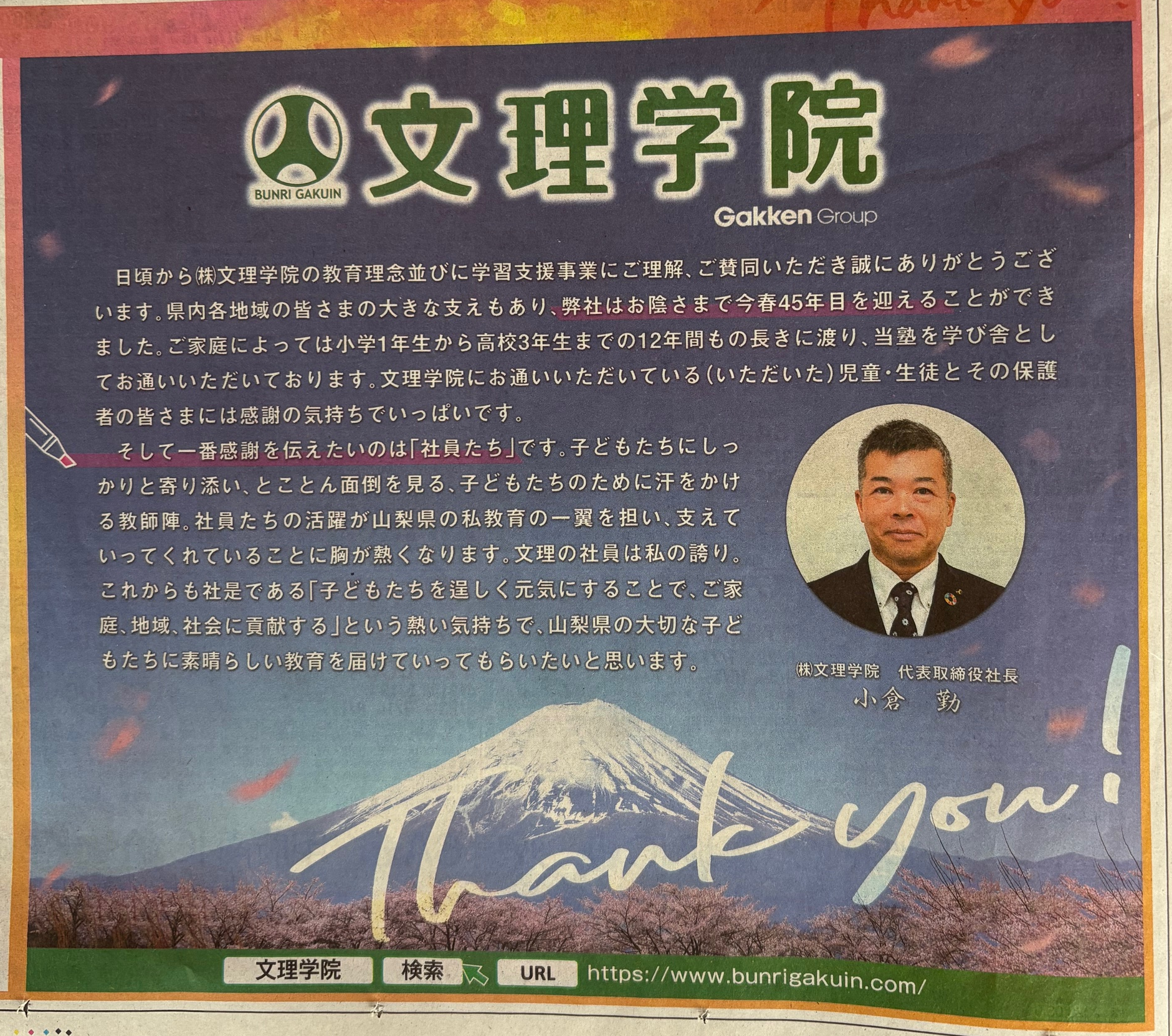 ★★★ 3月9日 山梨日日新聞 紙面広告 ★★★