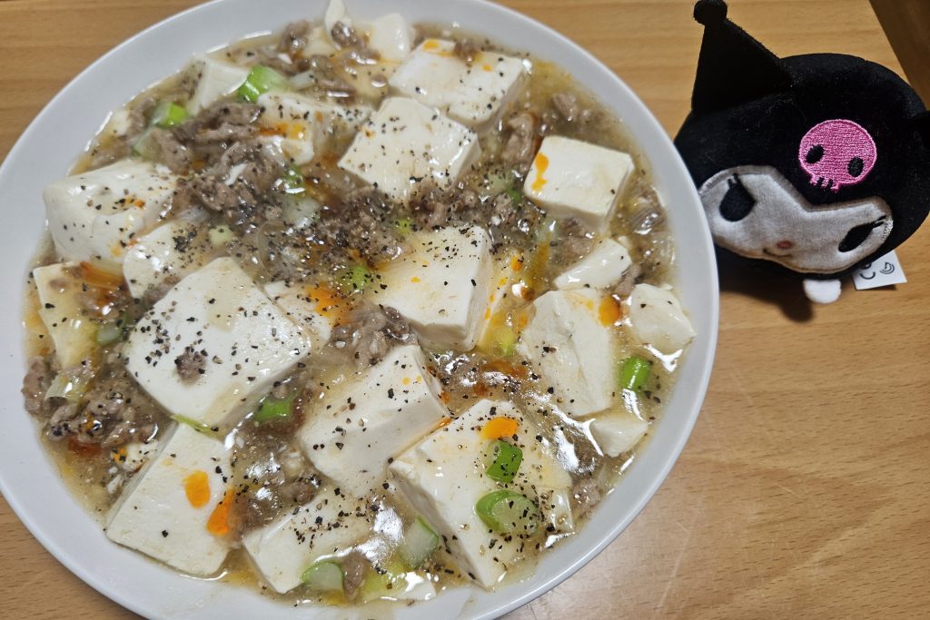 材料が余っていたので、昨日は塩麻婆豆腐を作りました。