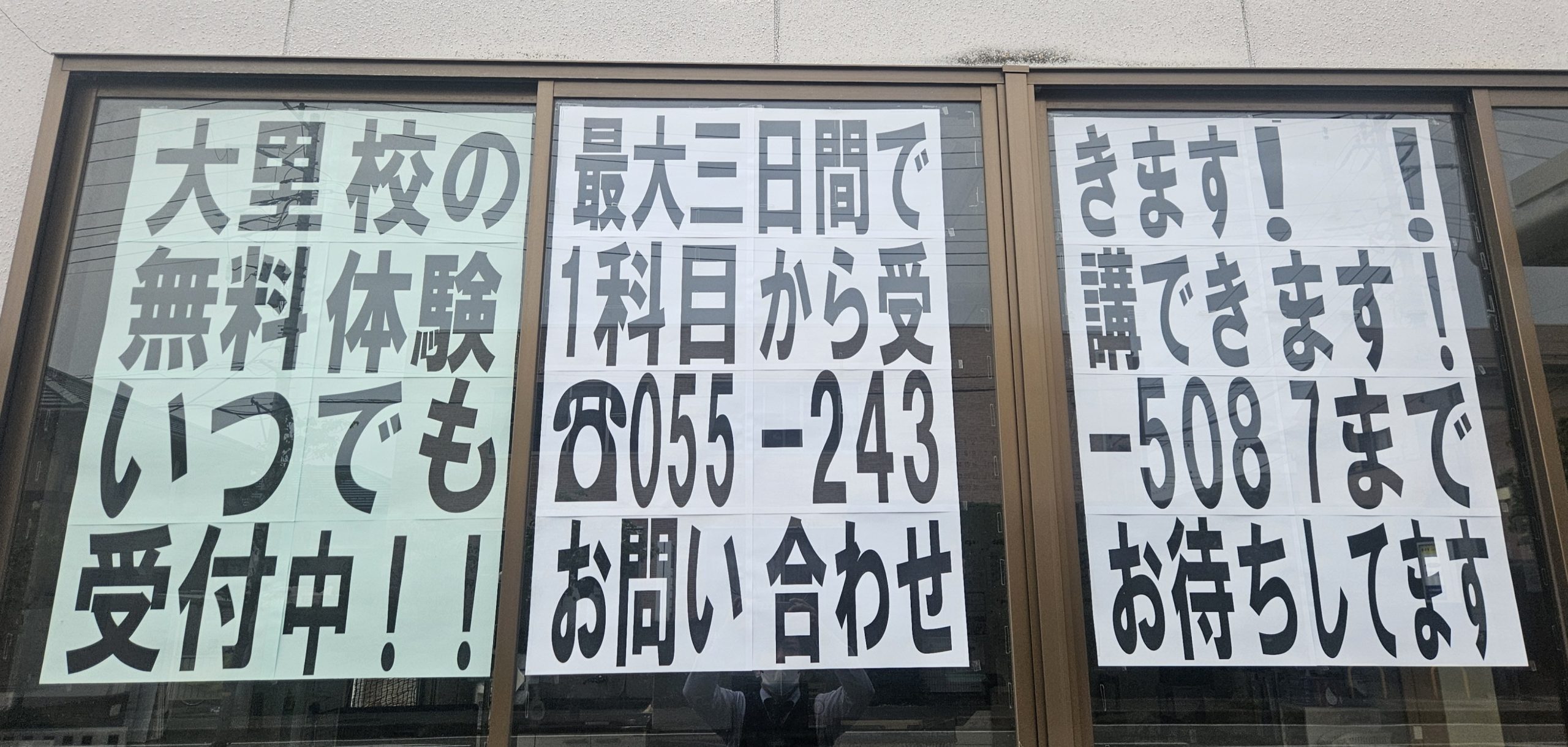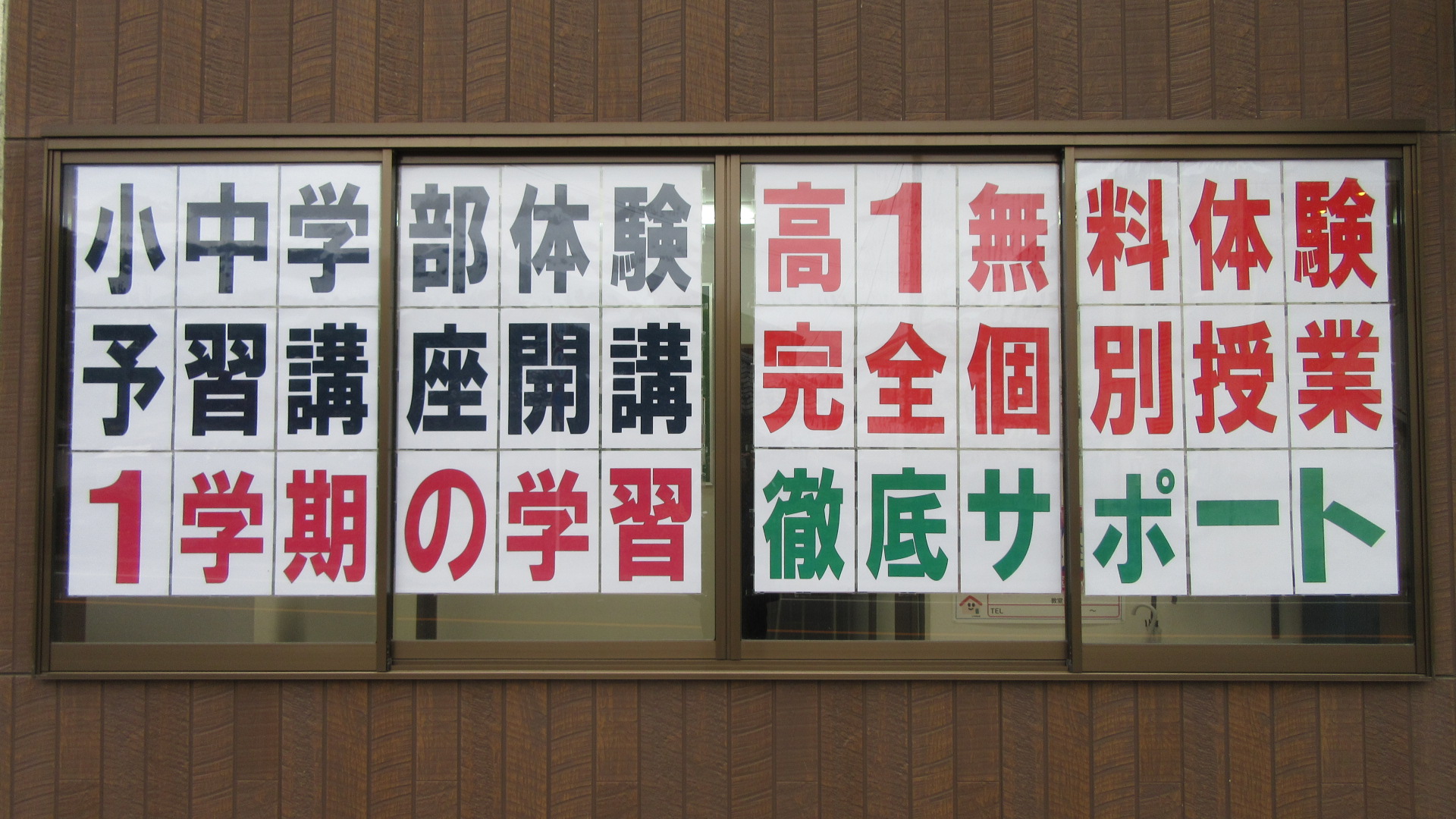 今日は校舎の窓の掲示物を刷新いたしました。掲示物の作成、印刷、掲示までBe-Wingの受講管理をしながら少しずつ仕上げていきました。