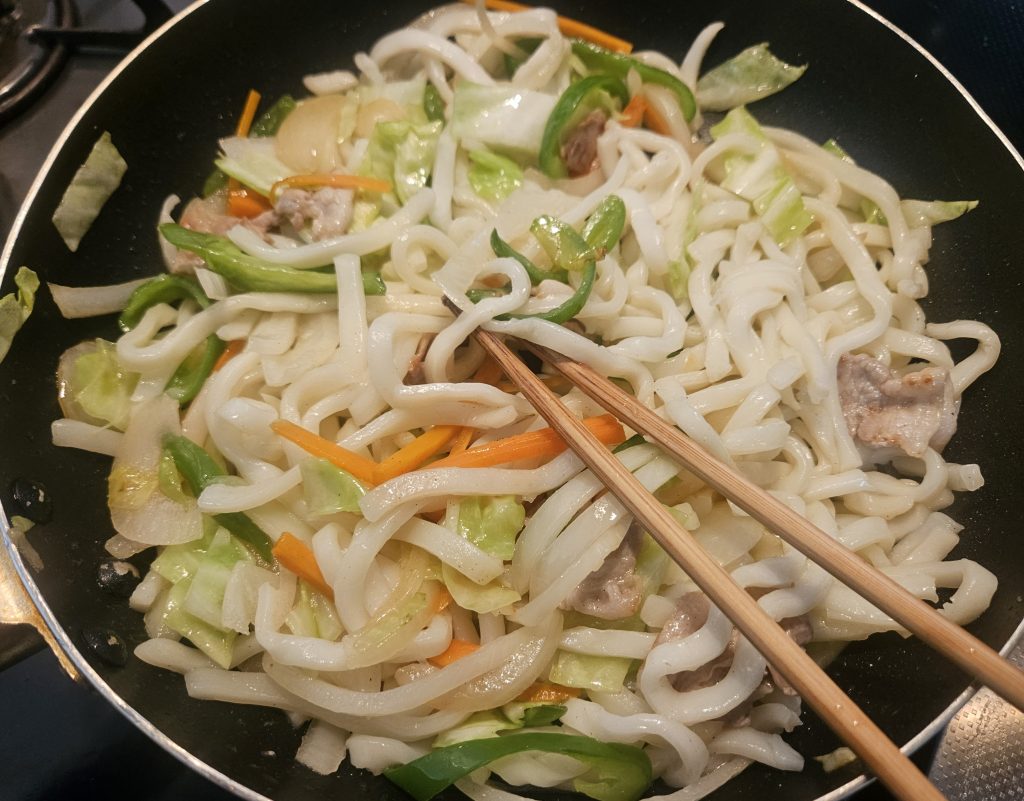 昨日は焼きそばでしたが、今回はまた焼うどんを作りました。