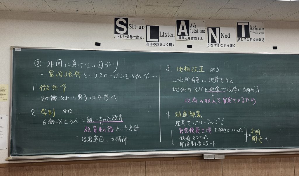 当初は「日清戦争・日露戦争 講座」の予定でしたが、学校の進度を考慮し、当日に「明治維新 講座」に切り替えました。