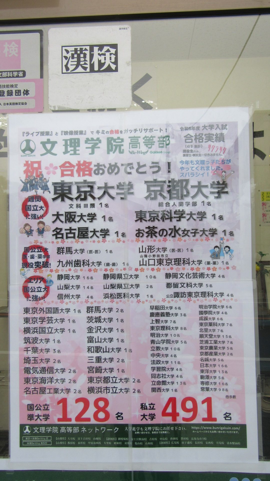 改めてですが、文理学院の小中学部、高等部の合格実績は素晴らしいです!